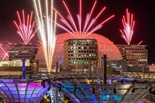 El punto culminante de los procedimientos de la víspera de Año Nuevo de la Expo 2020 Dubai, una caída de bola mágica que rivaliza con la del famoso evento en Times Square de Nueva York, dio la bienvenida a 2022 con una floritura brillante en Al Wasl Plaza a las 0000 GST, acompañada de dos exhibiciones de fuegos artificiales que se iluminaron El cielo nocturno.