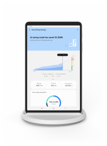 Para ayudarle a ahorrar en costos de energía, SmartThings Energy[i] en el Samsung Home Hub analiza sus estándares[ii] de uso y utiliza su modo de ahorro de energía equipado con IA para ayudar a reducir sus facturas de energía. Y para estar al tanto de todo, SmartThings Home Care Wizard monitorea todos sus electrodomésticos inteligentes, le envía notificaciones cuando es necesario reemplazar piezas y ofrece orientación si algo sale mal.