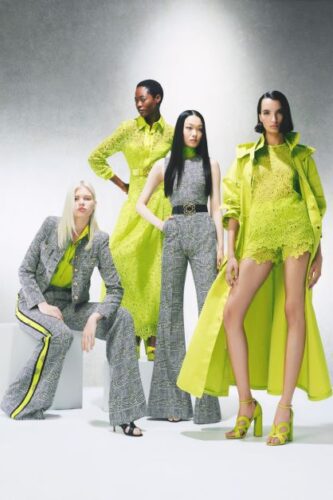 Desde el día hasta bien entrada la noche, la mujer ELIE SAAB siempre lleva su personalidad con convicción. El monograma de la casa de alta costura se teje sutilmente en faldas de talle alto y blusas cortas en color lima electrizante para momentos despreocupados de simple placer. Los vestidos y los monos de popelina están adornados con mangas abullonadas exageradas, una extensión de la fuerza y la audacia. Deslumbrantes vestidos de gala bordados con hilo explotan con varios colores y estilo para momentos de glamour y ostentación, mientras que llamativos patrones de lentejuelas de moda están bordados en tul negro transparente para la ilusión atrevida de la piel. El macramé se enreda íntimamente con el encaje y el tejido coquetea con las plumas, dando profundidad y movimiento a los vestidos asimétricos y vestidos de coctel que se mueven y sacuden, llevándola a nuevos potenciales.