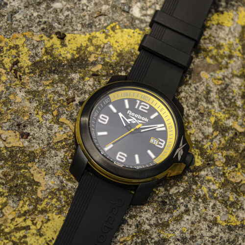 Este reloj Reebok es un reloj analógico de tres agujas, cuenta con correa de silicón color negro y carátula color negro, es resistente al agua hasta 10 metros, tiene un movimiento Miyota 2415, cristal acrílico y un diámetro de la caja de 45mm.