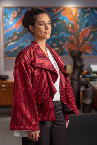 ¿A qué se debe el nombre de Makeda en las dos marcas? Ella explica que es el nombre de la reina de Saba, una mujer misteriosa y majestuosa, fuerte y empoderada, que refleja el temperamento de María Lorena e inspiró sus colecciones de trajes de baño que, ahora, evolucionan al diseño de ropa exclusiva para mujeres bajo la tendencia “slow fashion”, en donde aplica técnicas como upcycling.