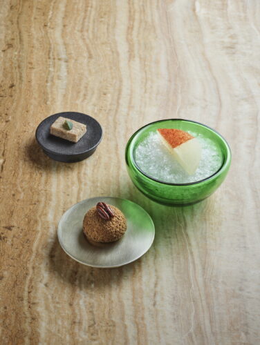 Para concluir los platos del almuerzo y la cena, el chef Jeremy Chan ha ideado postres que equilibran a la perfección los sabores con delicadeza, como vainilla, deodeok, canela y arroz salvaje y frutas y chiles coreanos de temporada.