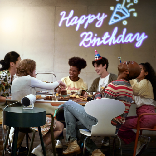 Para aquellos que quieran disfrutar de sus vacaciones con amigos, es posible proyectar espectáculos, imágenes, videoclips y bailar o disfrutar de la noche con imagen Full HD y sonido 360º, para que todos aprovechen la misma calidad de sonido. Y para obtener aún más potencia, conéctalo fácilmente a tu soundbar o sound tower, haciendo que la fiesta sea aún más completa.