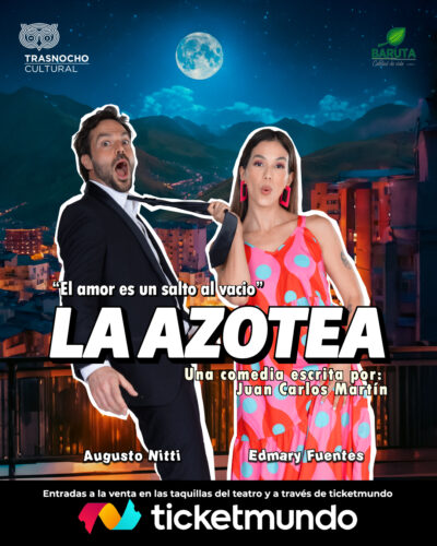 Después de una exitosa temporada en noviembre del año pasado, la comedia romántica “La Azotea” regresa a las tablas para cautivar al público en la sala Espacio Plural del Trasnocho Cultural, en doce únicas funciones desde el 28 de marzo al 20 de abril, una obra original del español Juan Carlos Martín, con las actuaciones de Edmary Fuentes y Augusto Nitti, quienes bajo la dirección de Guido Villamizar nos presentan este texto contemporáneo sobre las relaciones humanas con mucho humor y un coctel de emociones, cuyas entradas ya se pueden adquirir en la taquilla del teatro (ubicado en el C.C. Paseo Las Mercedes) o por la plataforma web: Ticketmundo.com.ve (@ticketmundo_ve)