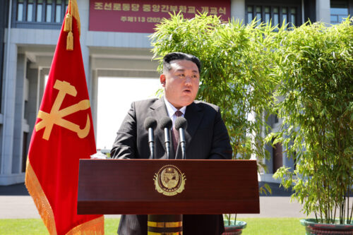 Reparto Jonwi levantado a la entrada norte de la capital Pyongyang en mayo de 2024