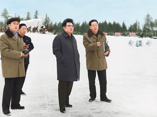 Kim Jong Il recorre el Conjunto Monumental de Samjiyon, marzo de 1979