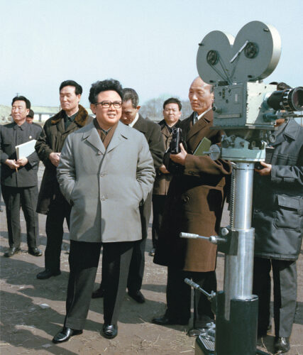 Kim Jong Il dirige sobre el terreno la filmación de una película, marzo de 1979.