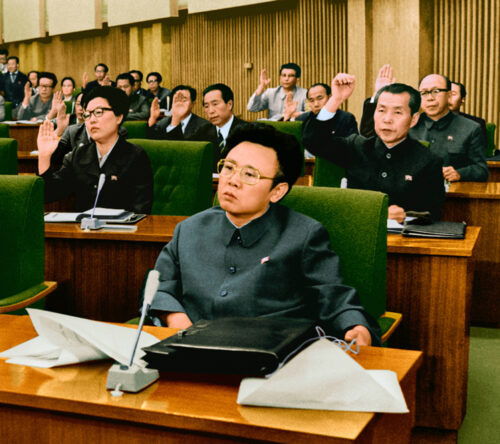 Kim Jong Il fue electo miembro del Presídium del Buró Político en el I Pleno del VI Comité Central del Partido del Trabajo de Corea, octubre de 1980