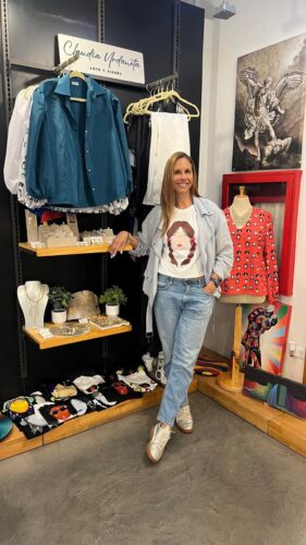 Dirigida a una mujer citadina y adulto contemporáneo, además con un amplio rango de precios, es natural que la propuesta de “Claudia Urdaneta Arte y Diseño” encuentre un lugar idóneo en Flamboyant Gallery. En su nuevo corner, se consiguen prendas de vestir de “Self Expressión”, su primera cápsula de indumentaria presentada a finales de 2024 en la Doral Fashion Week y que incluye estampados con ilustraciones de una de sus hijas, así “Voces de Perla”, su nueva colección de accesorios.