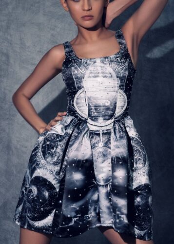 Sublime y etérea, pero con anclajes firmes en la materia, Alquimia Errante abraza la fantasía y reaviva la mirada inocente de aquel niño que construía mundos con sus manos, vistiendo sueños imposibles. Cada prenda es un talismán, un conjuro que ilumina y protege, que viaja con quien lo lleva, que respira a través de cada movimiento.
