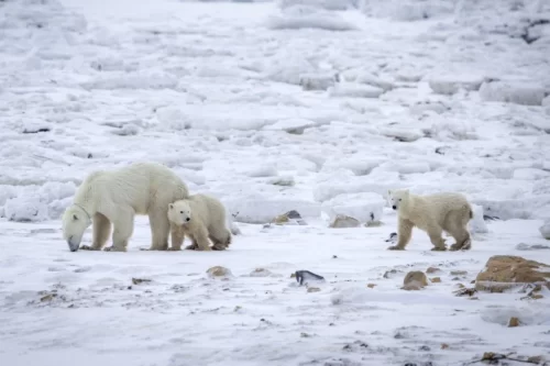 Se encontraron con la misma madre hace semanas, pero vieron un segundo cachorro sin etiqueta en la oreja, declaró Richardson a la AFP. «Cuando revisamos los datos, nos dimos cuenta de que había adoptado un segundo cachorro», añadió. Las imágenes de video recopiladas por los investigadores muestran a los cachorros observando un paisaje nevado, con la madre caminando detrás, y una secuencia en la que uno de ellos se apresura a unirse a los demás. Ambos cachorros tienen entre 10 y 11 meses de edad y probablemente permanecerán con su madre hasta los dos años y medio aproximadamente.